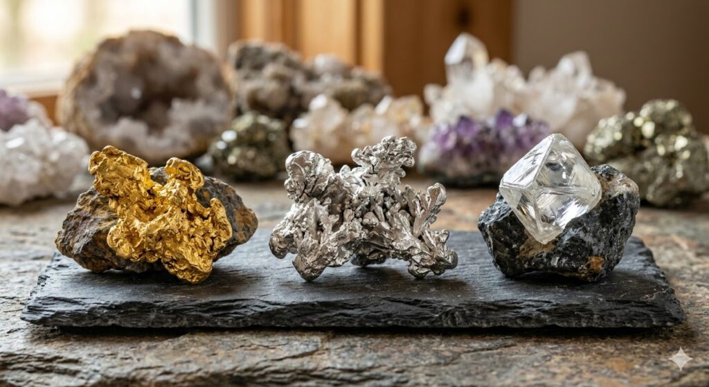 元素鉱物(金、銀、ダイヤモンドなど)