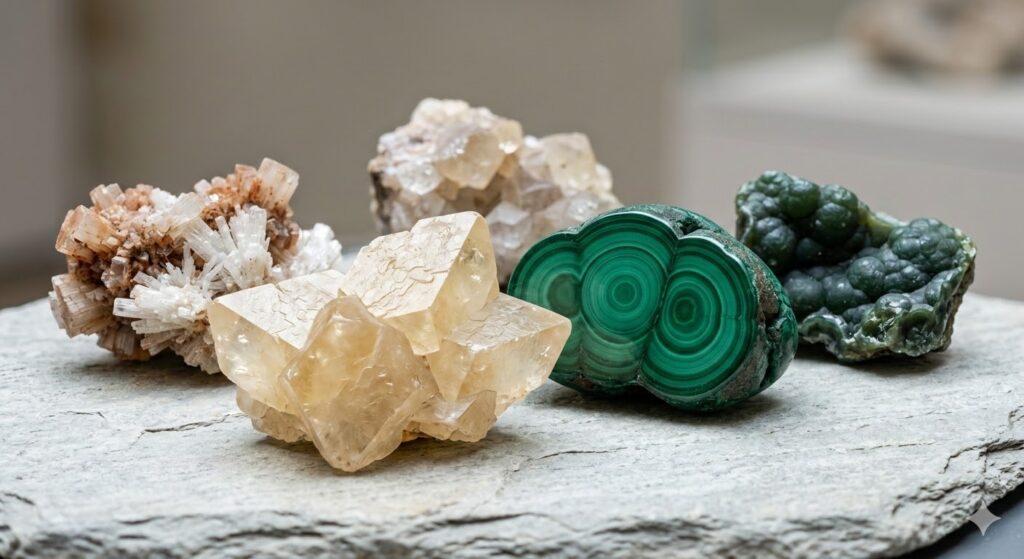 炭酸塩鉱物(方解石、孔雀石など)